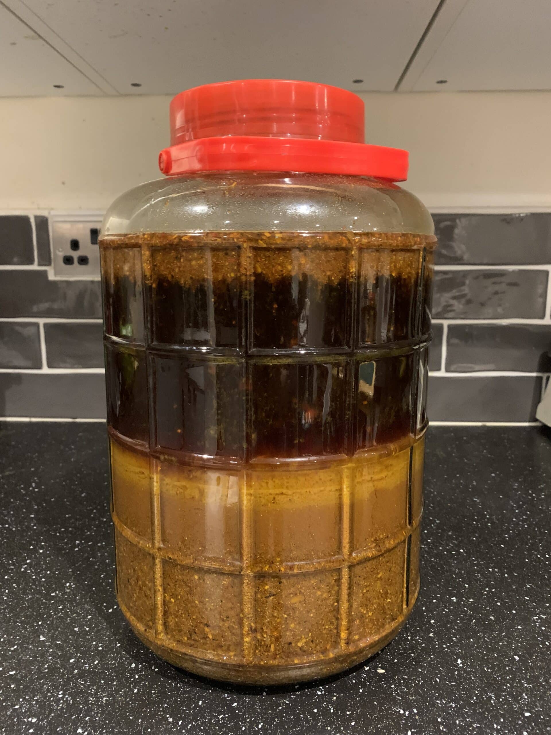 Dit Da Jow (Northern Shaolin) is macerated in alcohol / distilled water for at least a year before being bottled for sale. The ratio of alcohol of alcohol and water is the has been carefully chosen to extract the water soluble (polar) and non water soluble (non polar constituents. Many Dit Da Jow products contain too much alcohol which mean they dry the skin and have the wrong balance of the herbs active ingredients. Dit Da Jow (Northern Shaolin) massage oil is enthused in porous bags to ensure the removal of herbal debris which is not desirable during massage. Our New Dit Da Jow (Northern Shaolin) Glycerate is an alcohol free product (HALAL) and uses food grade glycerine to extract the DaoDi Chinese Herbs instead of alcohol.